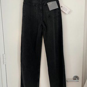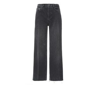 Rigid high waisted wide leg jeans in a black eco wash with a raw hem.