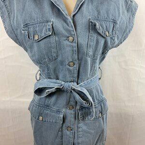 Boyish The Joe Denim Dress S Blue Button Front Drop Sleeve Tie Waist Short