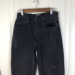 Forever Boyish. The Ziggy is a high-waisted relaxed straight jean that will give an edge to your ethical fashion collection. It comes in a vintage black wash with raw hem and knee destruction.