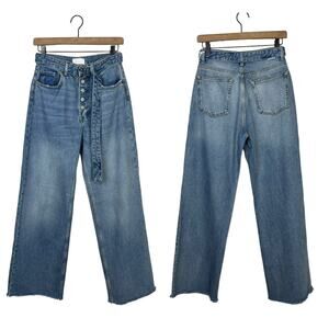 Boyish by HER NWT The Charley Belted Wide Leg Cotton Raw Hem Button Fly Jeans