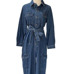 Boyish by Her Troy Denim Belted Cargo Pocket Button Front Jumpsuit Size Medium