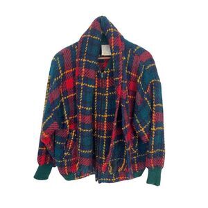 Boyne Valley weavers womens size L/XL Wool full zip zipper plaid jacket & scarf