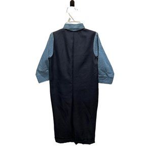 • Attached Light Blue Denim Shirt with a Collar has Long Sleeves with Button Cuffs and 4 Buttons Down the Front