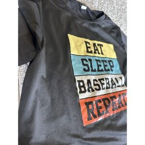 • Black "Eat Sleep Baseball Repeat" tee, size 10/12