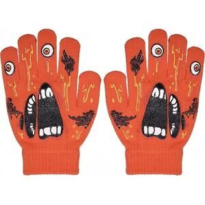Boys 2 pairs of Gloves: 1-Halloween AND 1-Black (Monster Orange)
