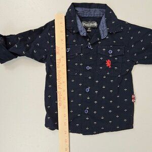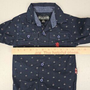Boys 2T Anchor Boat Formal Church Anchor Boat Nautical Bttn Down Shirt Navy Blue