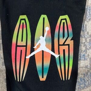 Boys Jordan set. Sweatshirt is white with black sleeves and “Air” on the front. Black pants with “Air” on the side leg. Size 3T.