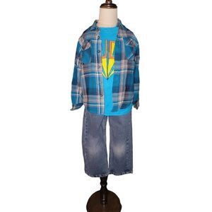 Boys 3pc Outfit Lot XS/5 Wrangler Jeans Dude Screen Tee Flannel Shirt Grunge Alt