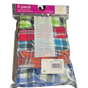Says 5 pack, but one pair is missing, its actually now a 4 pack. Boys 4 Pack Wonder Nation Woven Boxers Size medium 8 Plaid