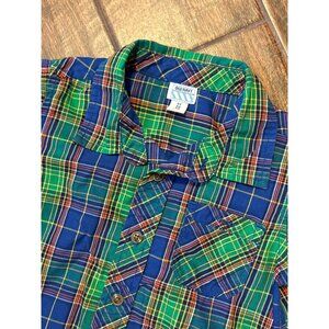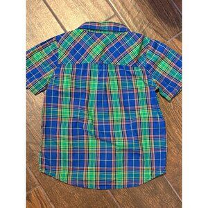 Boys 5T Blue & Green Plaid Button Up Shirt, Short Sleeve, Collared Pocket Casual