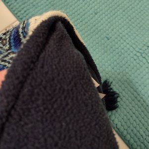 Great condition boy's peruvian-style ear flap, warm fleece lined winter hat with pompom. Fits kids ~age 6-11. Colors are navy blue, blue, cream, and dark yellow details. Smoke-free and pet-free home.