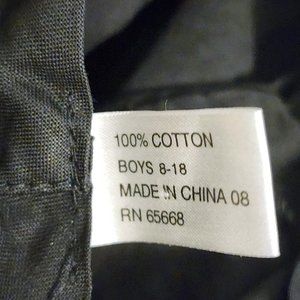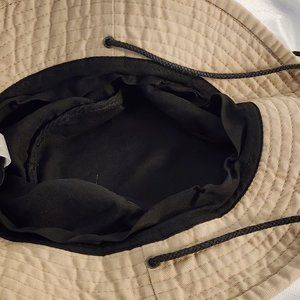Boys 8-18 Cotton Black & Tan Floppy Hat with Adjustable Chin Strap - Great Condition. Also works for Womens size small or xsmall. Cute & useful little hat needs a home! Machine wash & dried this all cotton natural fiber hat prior to taking photos & measurements. Measurements are approximate, taken with hat lying flat & doubled.