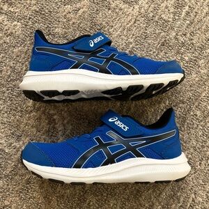 Boys blue ASICS with black accent. Size 1. Worn once. Almost perfect condition.