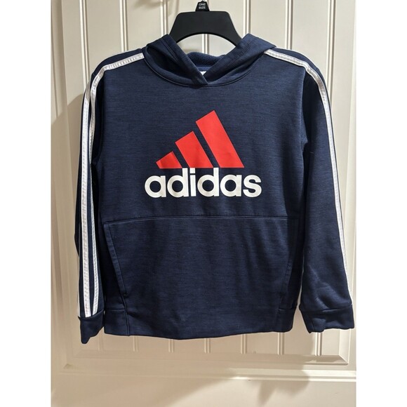 Boys Adidas Hoodie -Size M 10-12- Red White & Blue Striped Sleeves Hoodie