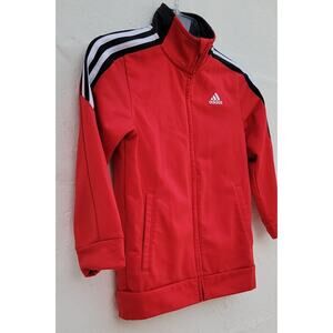 Boys Adidas Track Jacket Size 7 Red Black White High Neck Zip Up Mock Neck