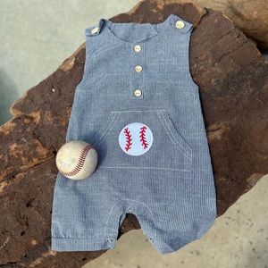 Oh my stars, this is too cute! Striped Jumper/Romper for game day. Functional buttons and snapped bottom for easy diaper changes. Lightweight cotton. Fit is true to size.