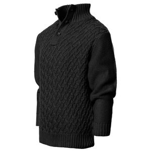 Stay warm and stylish with this classic black cable knit sweater. Perfect for any occasion.