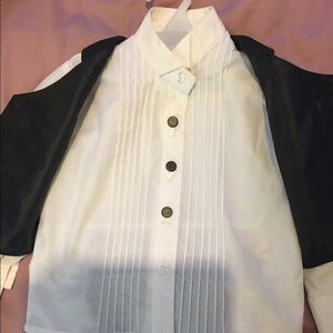 Boys 4 piece black tuxedo. Size is 2T. Worn once.
