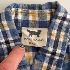 Boys Blue with Yellow accent stripe plaid button down shirt by Jack Thomas. Excellent Used Condition.