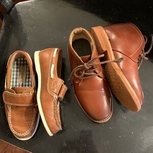 Boys Brown faux Leather Shoes size 12 boat shoes chukka boots chestnut