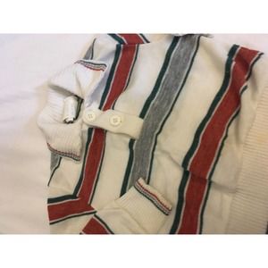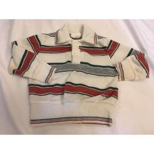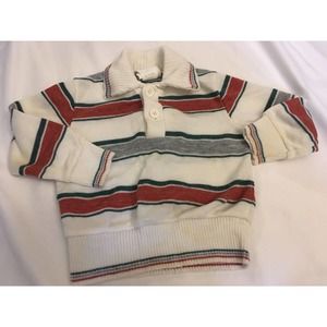 Boy's Bull Frog Knits striped sweater size 18 Mo Green Orange 70s 80s Collared