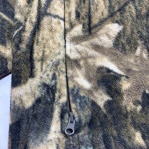Boys Camouflage Columbia Zip up Fleece w/ zippered pockets Size 14/16. A loose thread on RH pit. See photos.