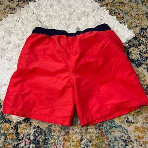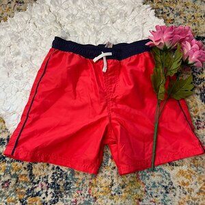 Boys' Cat & Jack swim trunks. Size L (10/12). Red in color with navy waist & trim. Elastic waist and drawstring. Preloved and in good condition, please see photos for signs of wear/ wash. Name label on tag has been removed since photos were taken & tag is in tact.