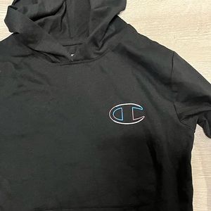 New Never Worn Boys Champion Long Sleeve Hoodie with front pocket. Champion logo over the breast and down the sleeve. Size Small