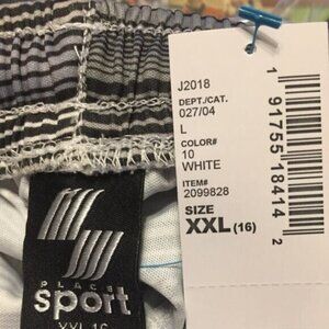 Boys PLACE Sport Colorblock Printed Shorts. Size: XXL (16). 100% polyester interlock; allover print at back. Elasticized waistband. Functional drawstrings. Side seam pockets. Printed The PLACE Sport logo at front. NWT!