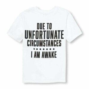 Boys Childrens Place T-Shirt Due To Unfortunate Circumstances I Am Awake MED 7/8