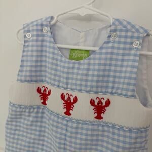 Boy’s Classic Whimsy Lobster Embroidered One Piece Romper Outfit 3T