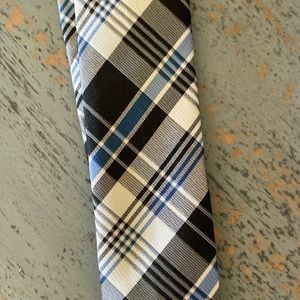 Boys Clip On Tie - 17" - Black Blue White Plaid