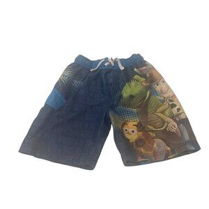 This bundle includes four boys' shorts featuring playful designs and versatile styles for varied occasions. The set includes Toy Story-themed shorts, sporty red and black shorts, classic camouflage cargo shorts, and vibrant yellow and blue swim shorts. Comfortable fabrics ensure durability and great wearability for active kids.
