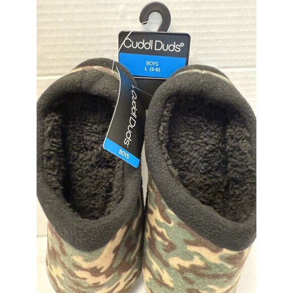 Boys Cuddl Dud Printed Camo Fleece Slip On Clogs Slippers Sz L 5-6 New