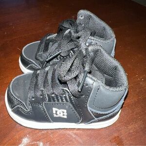 Elevate your boy's shoe game with these sleek black high top sneakers from DC Shoes. Designed with the active boy in mind, these athletic sneakers are perfect for any adventure. The size 5 shoes feature a comfortable fit and are crafted with durable materials to ensure long-lasting wear.
