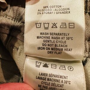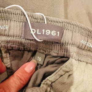 Light grey knit denim with self tie waistband. It features functional pockets and tonal stitching.