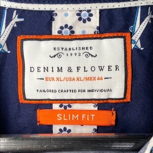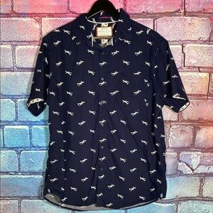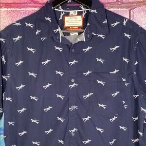Boys Denim & Flower Button Up Navy Blue Shark Print Shirt Size XL