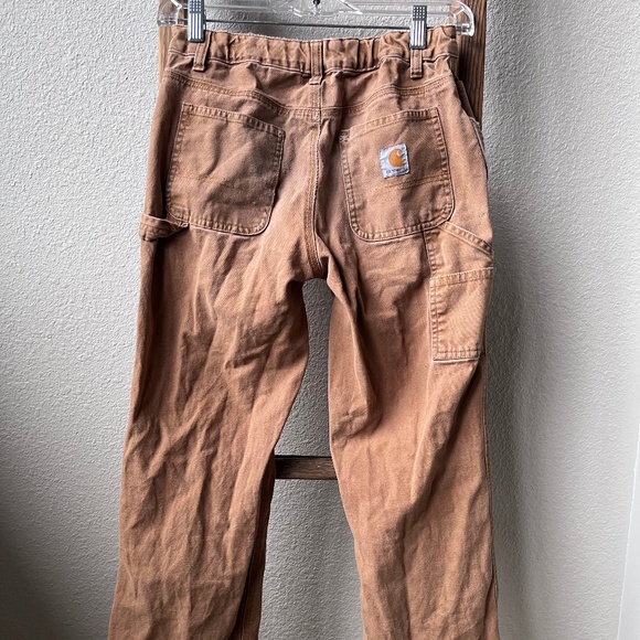 Boys' Carhartt work pants with a distressed look. Sturdy and durable, perfect for work or play.