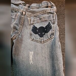 Boys Distressed Vintage Dickies Jeans with Skull Patch. Size 8