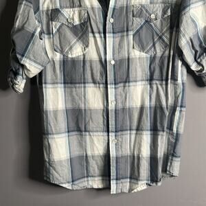 Boys Ditch Plains Blue and Gray Plaid Snap Front Shirt Size Large
