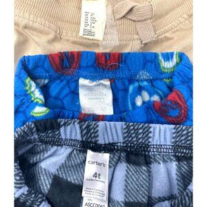 Carter's and H & M Basic present boy's fleece and knit lounging pants in navy, blue, and light brown. Designed for size 4T boys, these pants feature stylish plaid and print designs. The Light Brown have ribbed cuffs for a comfortable fit.