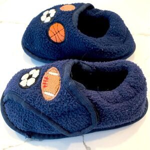 Boys Fleece Navy Blue Sports SLIPPERS Football Soccer Basketball