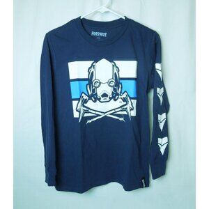 Boys Fortnite Long Sleeve Navy White Blue Graphic Tee Size 14/16