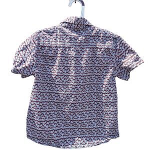 Make waves with this adorable Free Planet boys' short sleeve button-down shirt featuring a shark and palm tree print on a crisp white background. Perfect for summer adventures, beach days, or casual outings, this size 6 shirt adds fun and style to any young explorer’s wardrobe.
