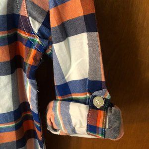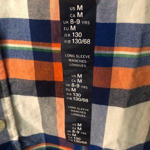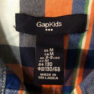 Boys Plaid Button Front Shirt from GAP Kids - White, Orange, Blue - New with Tags - Size Medium (8-9) - 100% Cotton - Shipped with USPS - From a smoke free and pet free home.