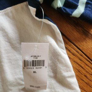 Up for sale is this boys GAP polo. It is blue and white with striped sleeves. A brand new shirt with tags.
