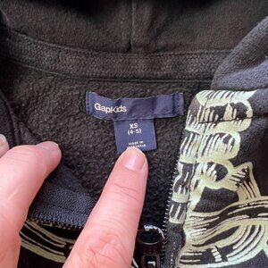 Boys Gap Kids xs 4/5 Black Zip up Skeleton Hooded Sweatshirt