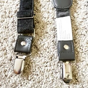 Boys Gray Suspenders Braces Velvet Feel Y-Back Preppy Wedding Silver Clip
