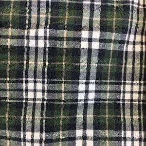 Navy, green, yellow, white plaid button down collar shirt. Left chest pocket. Really nice 100% cotton fabric. Gently worn a couple of times. Like new condition. Comes from a smoke free, pet free home.