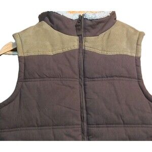 This Boys Gymboree Winter Vest in size M (7-8) is a stylish and practical outerwear option for young boys. Made from 100% polyester with a lining also of 100% polyester, it is perfect for keeping them warm in the winter season. The vest features a full zip closure, hood, and pockets, making it suitable for various occasions such as travel, casual wear, and workwear. The brown color and western-themed design add a fun and adventurous touch, while the durable material ensures easy care with machine washability. Perfect for adding a cowboy flair to any boy's wardrobe.